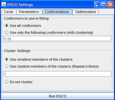 Selected conformations can be used for the calculations. If this option is selected all the non utilized conformers will be clustered into a cluster and their fitting value will be set to 0.